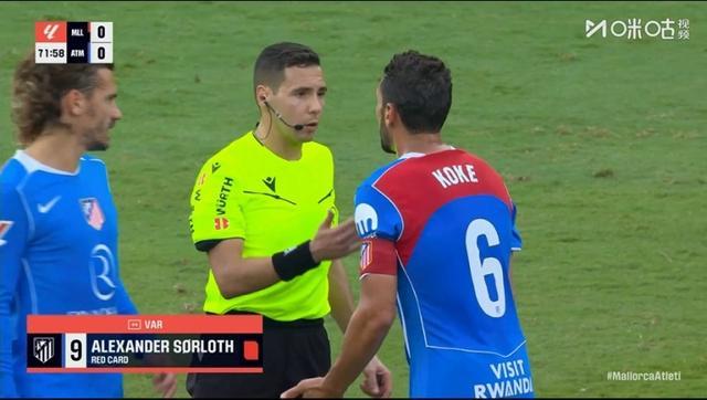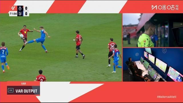 09月21日西甲日报讯 今日西甲马竞vs马洛卡,比赛第72分钟,索尔洛特亮鞋钉蹬踏,裁判亲自看VAR后出直红,马竞少打一人!