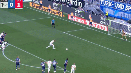 客场对阵霍芬海姆,凯恩延续了出色的状态。比赛的第43分钟,卡尔开出右侧角球,凯恩禁区中路右脚顺势扫射破门,打破了比赛僵局。